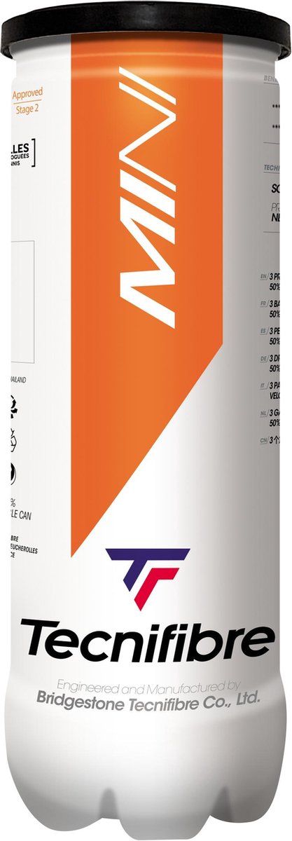 De Tecnifibre Mini Stage 2 Oranje tennisbal is de perfecte bal voor de gemiddelde jeugdige tennisser. Met een standaard grootte, maar 25% lichter gewicht voor een zachtere bounce, is het een uitstekende optie voor het spelen op een driekwart veld. De lage compressiebal is 50% langzamer dan een gewone tennisbal, wat ideaal is voor beginnende tennissers. Met 3 tennisballen in een blik, is dit een handige set voor tennissers met een leeftijd van 9-10 jaar en een racket grootte van 25-26 inch. De Tecnifibre Mini Stage 2 Oranje tennisbal is uitgerust met toonaangevende technologie die ervoor zorgt dat de bal optimaal presteert en het spel makkelijker maakt. De bal is gemaakt van duurzame materialen en is speciaal ontworpen om de effecten van slaan, stuiteren, lopen en draaien tegen te gaan. Daarnaast heeft de bal een uniek ontwerp, wat de speler in staat stelt om een betere controle en precisie te verkrijgen bij het spelen.